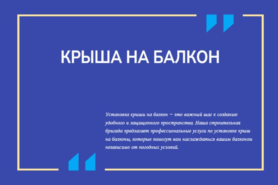 Установка крыши на балкон – это важный шаг к созданию удобного и защищенного пространства. Наша строительная бригада предлагает профессиональные услуги по установке крыш на балконы, которые помогут вам наслаждаться вашим балконом независимо от погодных условий.